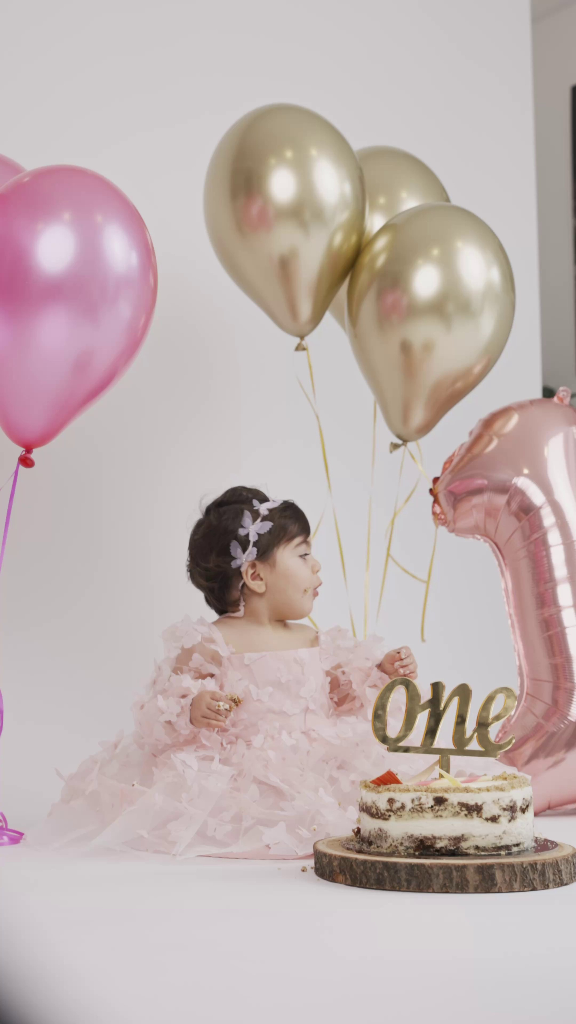 A ‘Cake Smash’ photoshoot is an incredibly fun session! They are a popular choice among parents wanting to celebrate their child’s first birthday. You’re welcome to book a cake smash session at any time once your baby is sitting independently.